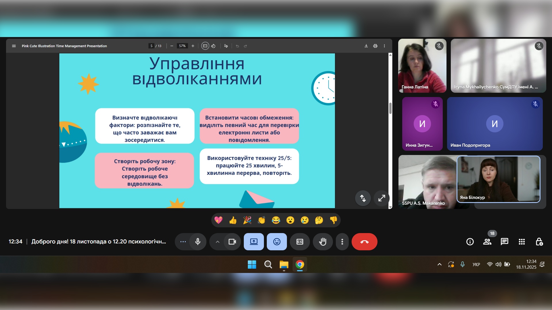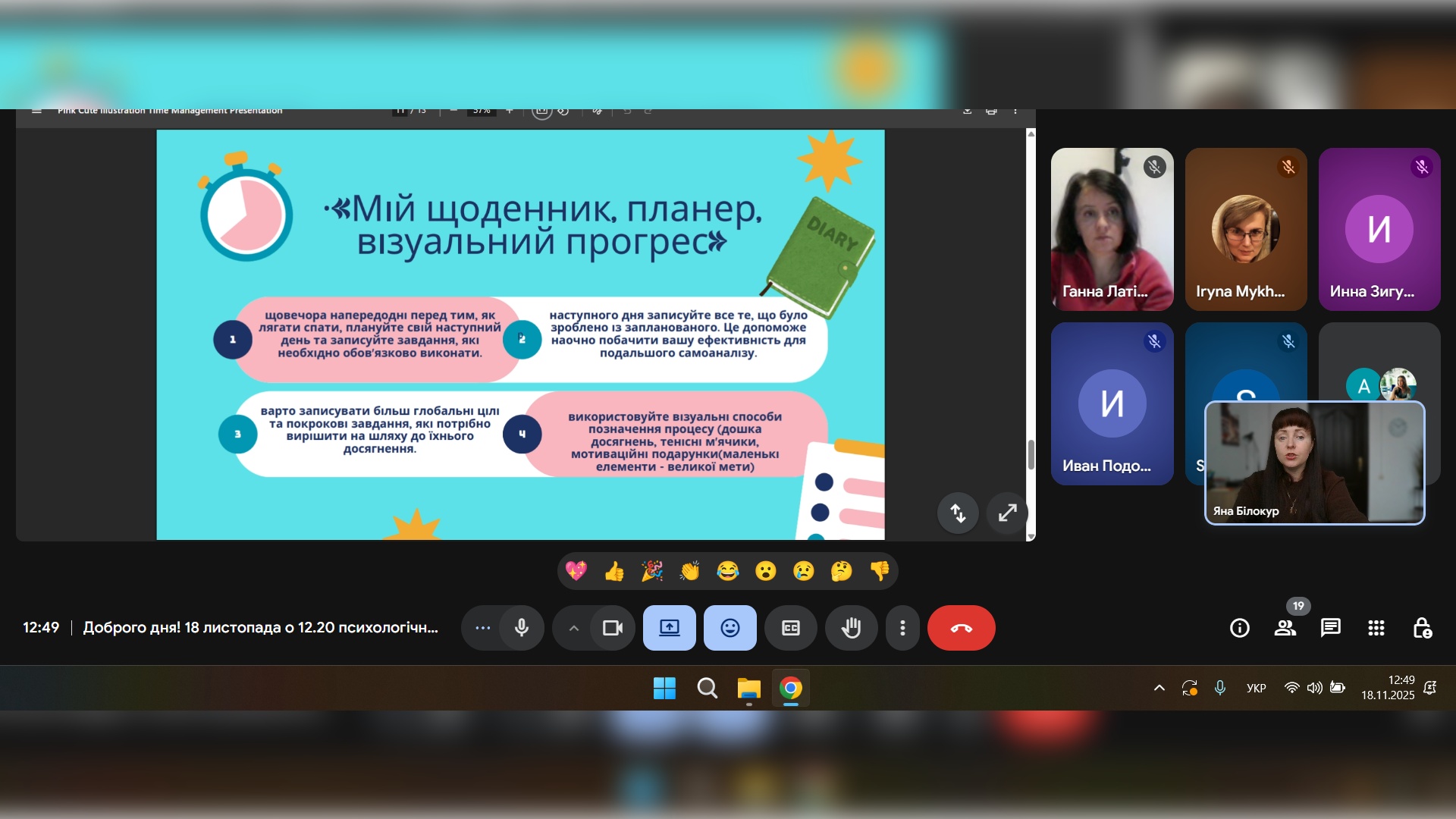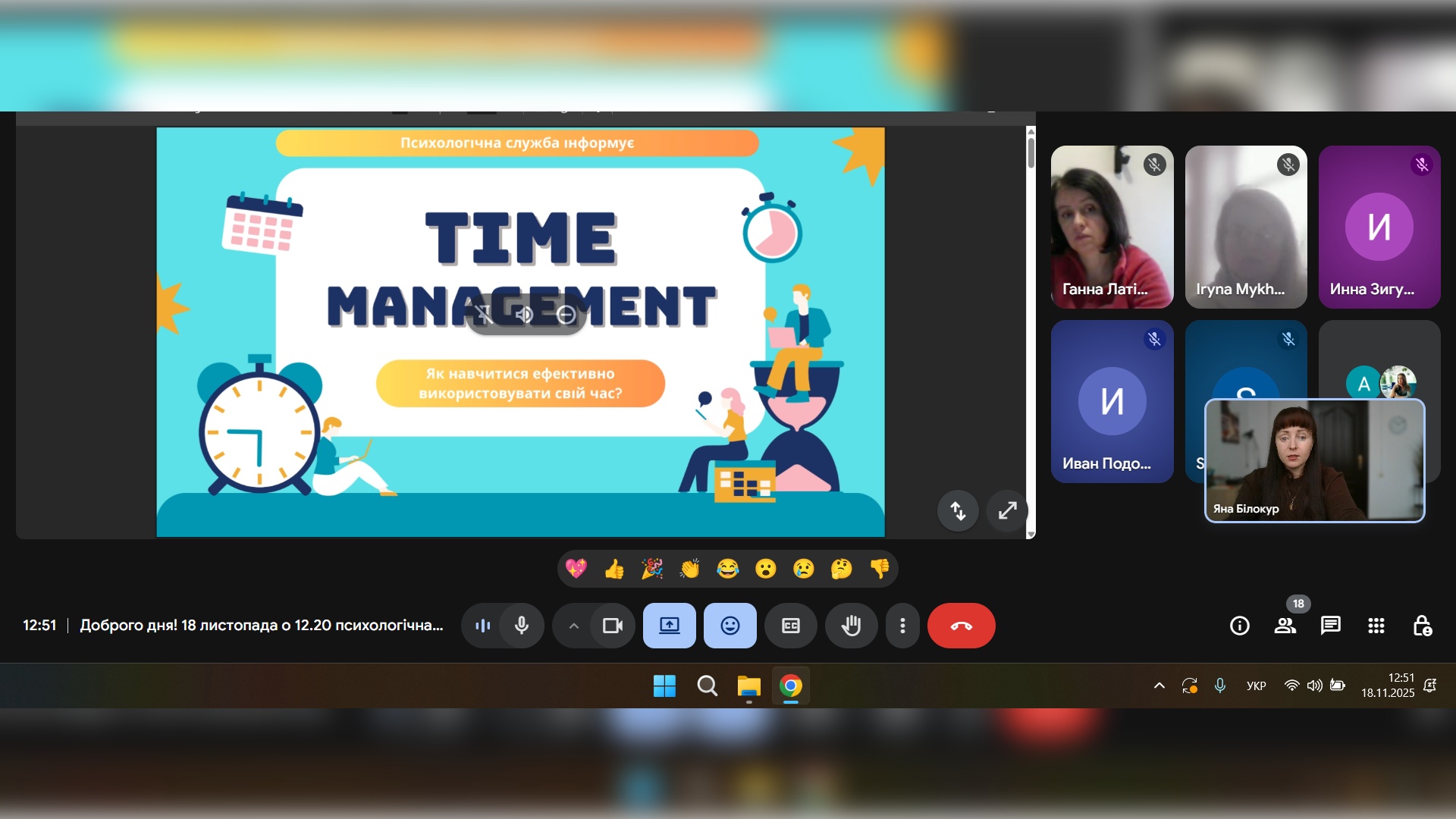 18 листопада співробітниками психологічної служби було проведено онлайн захід на тему: «Тайм-менеджмент. Як навчитися ефективно використовувати свій час».