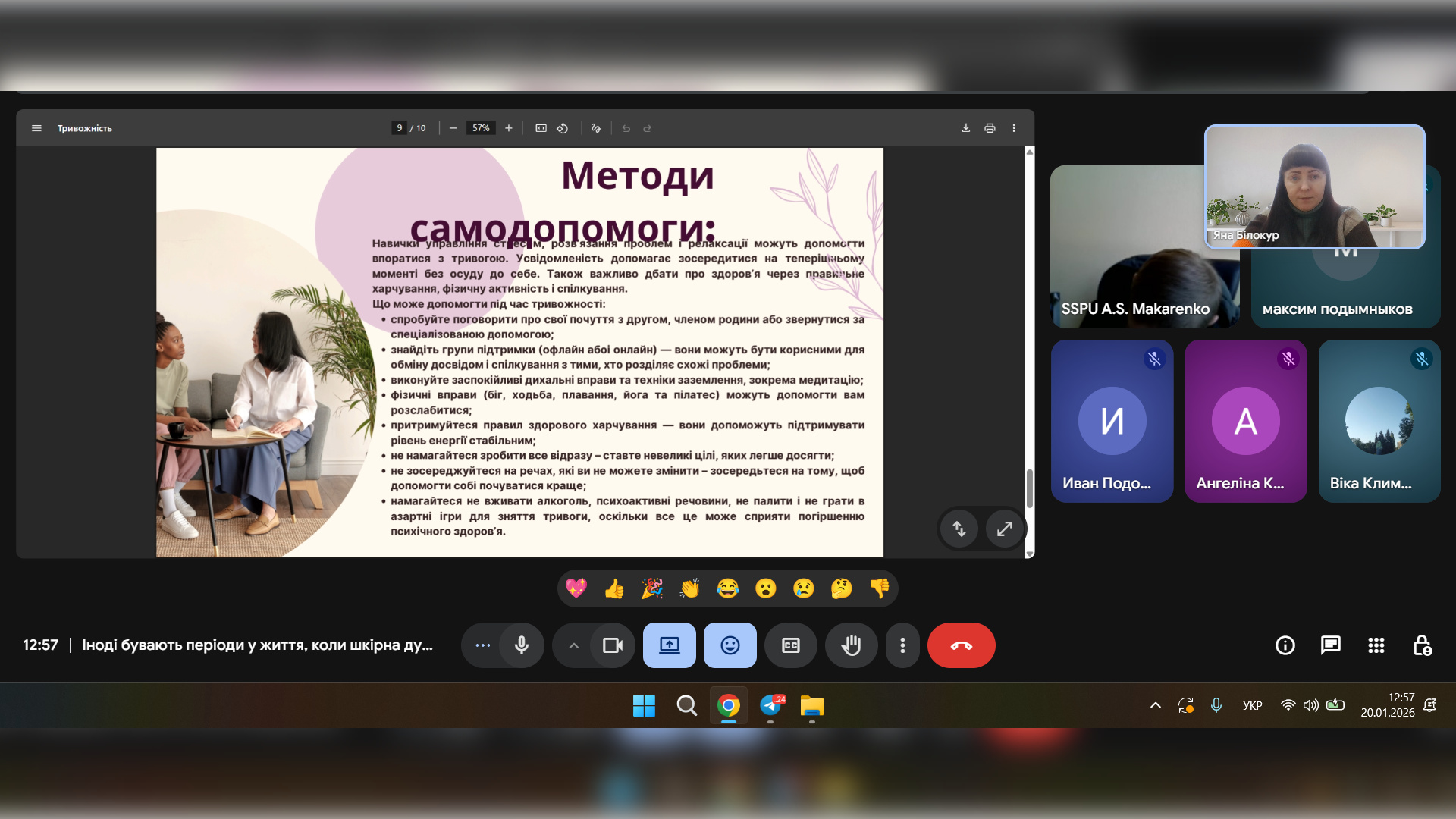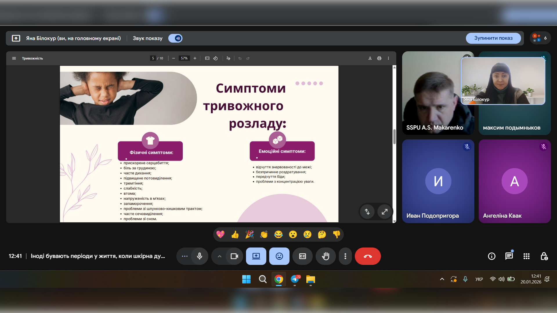 Як розпізнати тривогу та спробувати з нею впоратися, можна було дізнатися на зустрічі з психологічною службою 20 січня «Тривожність: симптоми та ефективні методи самодопомоги».