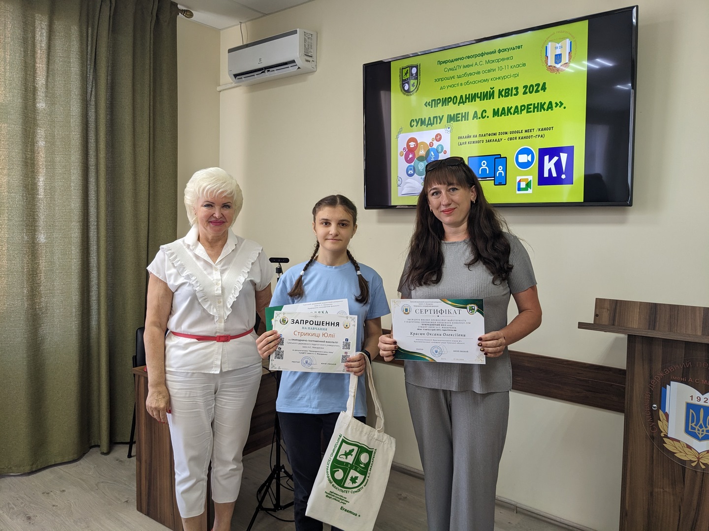 27 червня 2024 року у Макаренківській родині СумДПУ імені А. С. Макаренка відбулося нагородження переможців обласного конкурсу-гри «Природничий квіз СумДПУ імені А.С. Макаренка», який організував і провів природничо-географічний факультет СумДПУ імені А.С. Макаренка.