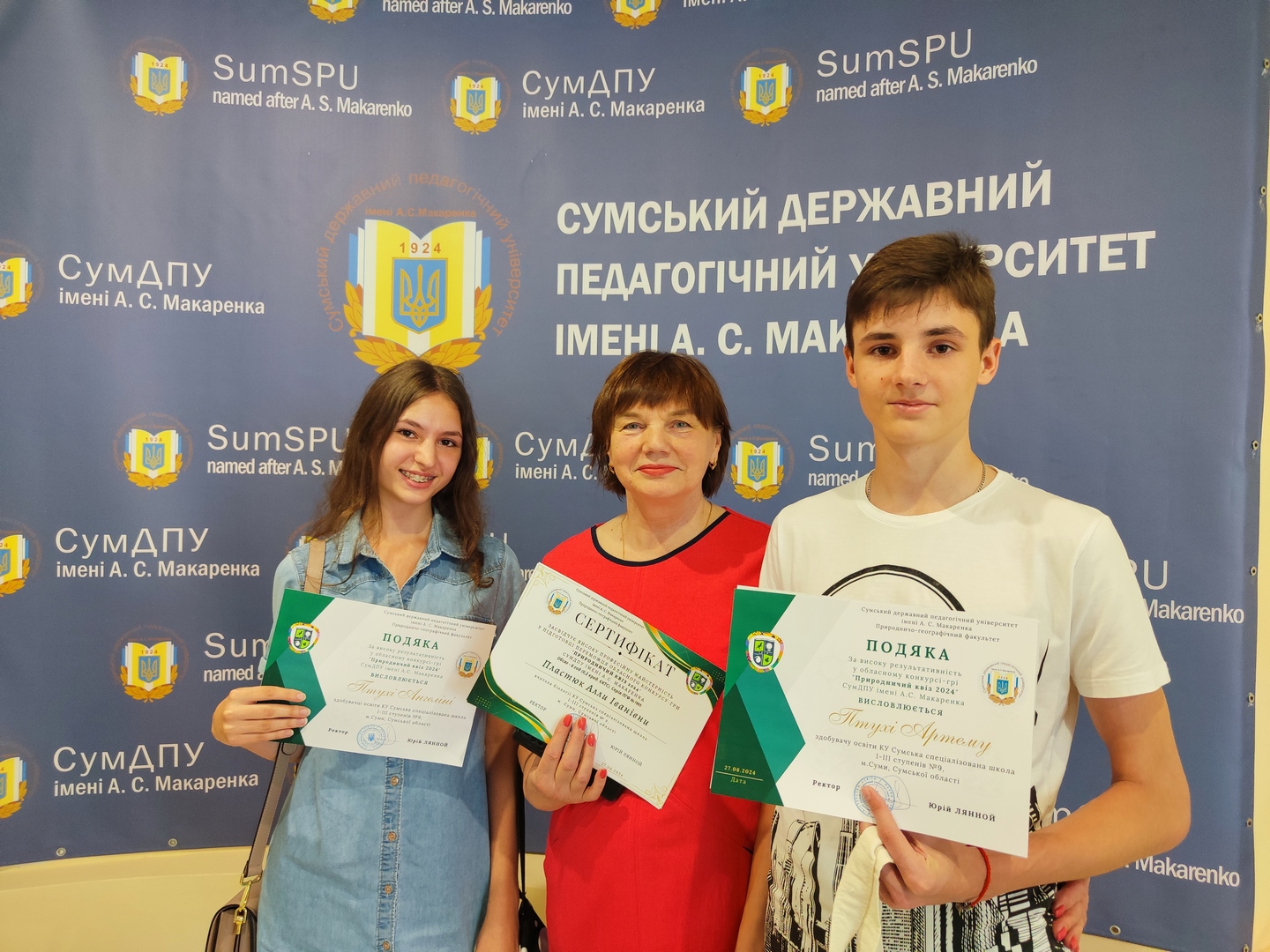 - 1 місце - команда у складі Дарина Донець, Анастасія Кир’ян, Данило Чернодід (Грунський ліцей імені Андрія Діхтяренка Грунської сільської ради Охтирського району Сумської області)
