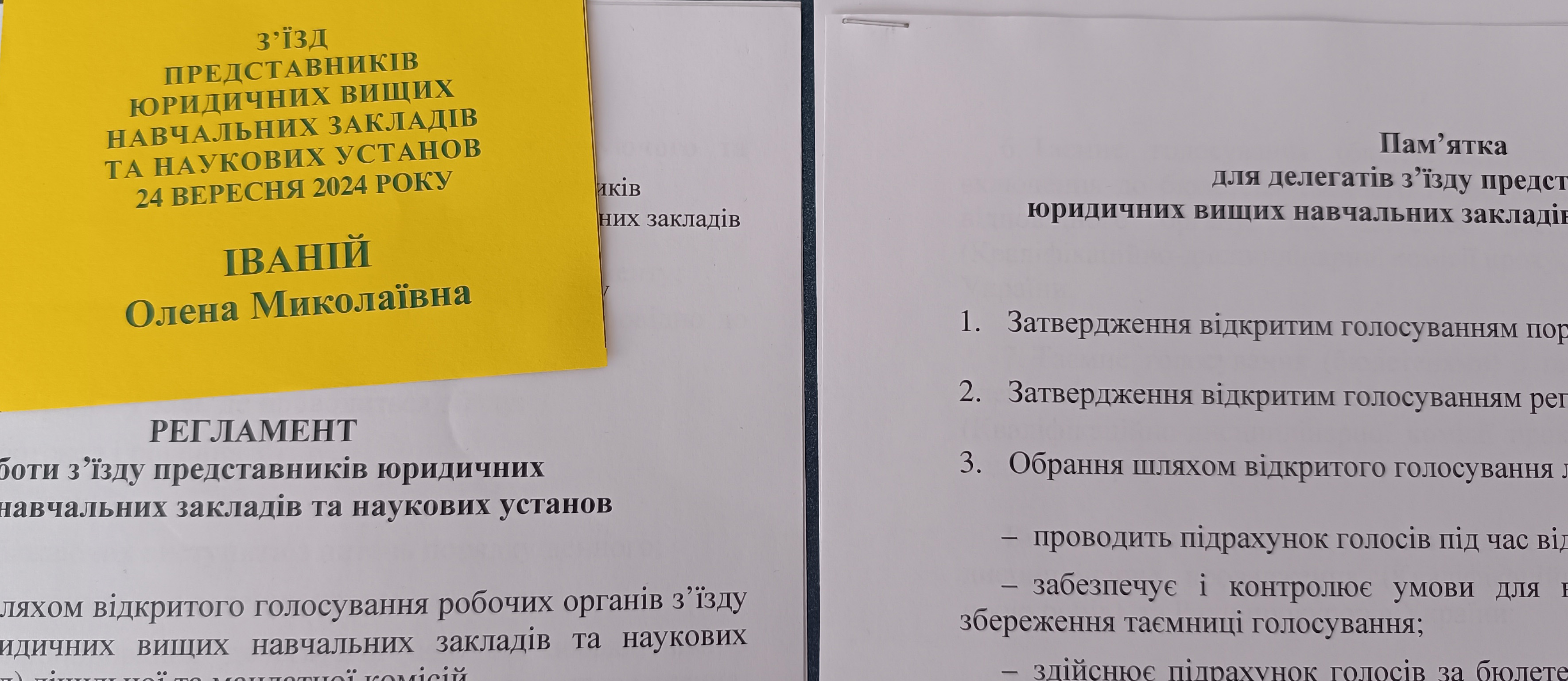 10 та 24 вересня 2024 року завідувач кафедри права та публічного управління Олена ІВАНІЙ як делегат від університету брала участь у з’їзді представників юридичних вищих навчальних закладів та наукових установ, який проходив у приміщенні Київського національного університету імені Тараса Шевченка.