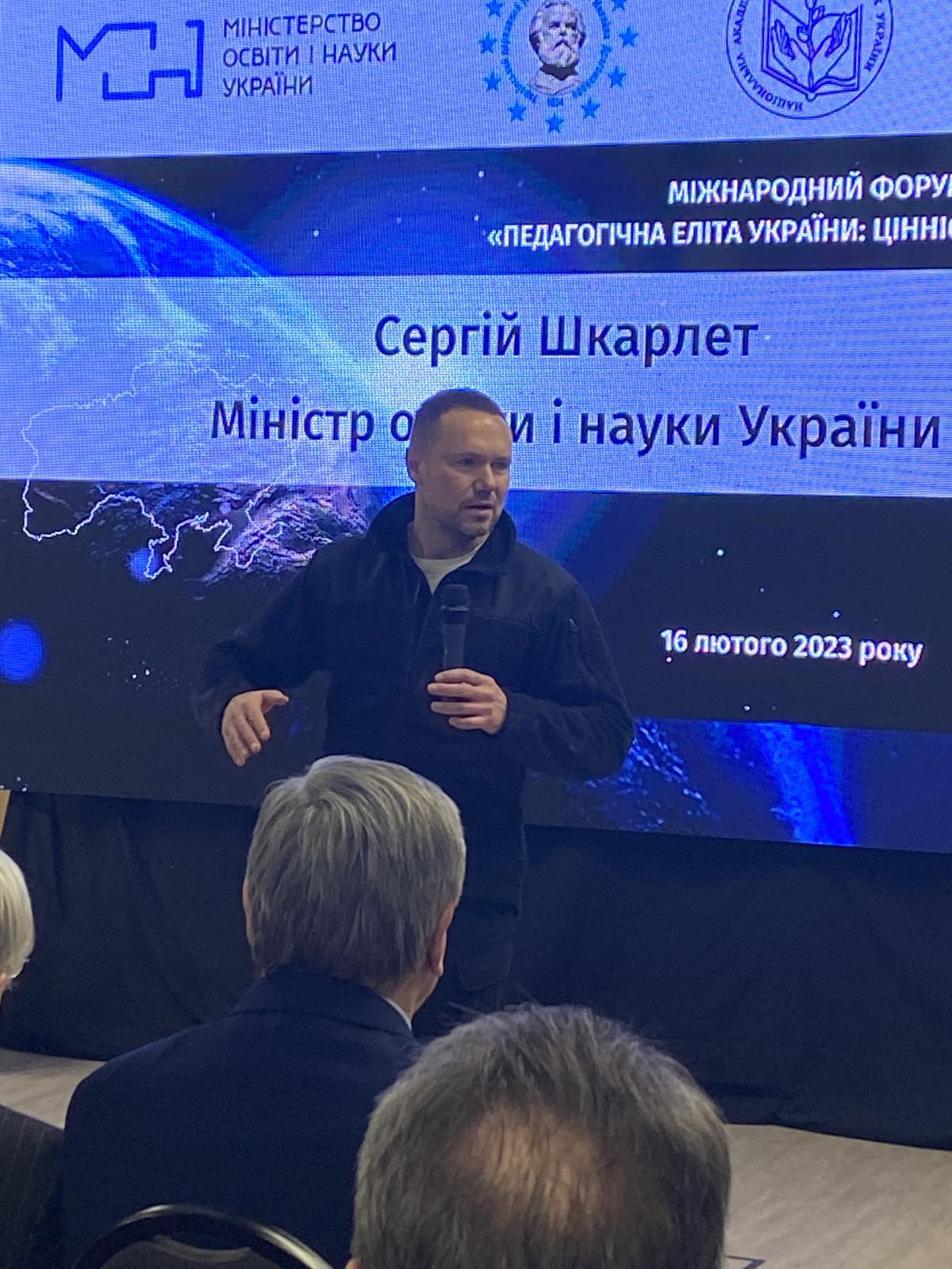 Вітання учасникам форуму передав Президент України Володимир Зеленський, який відмітив роль та значення вищої освіти, зокрема педагогічної, у розвитку українського суспільства. Міністр освіти і науки України Сергій Шкарлет нагадав про кроки, здійснені у сфері вищої освіти зі створення наукових хабів, співпраці стейкхолдерів у галузі вищої освіти та подякував освітянам за стійкість під час війни. Міністр, у котрий раз зазначив, що навчання повинно бути безпечним, доступним, якісним та безбар’єрним. У межах заходу Сергій Шкарлет та керівниця освітніх ініціатив «The LEGO Foundation» в Україні Оксана Рома передали 25 ноутбуків представникам закладів післядипломної педагогічної освіти.