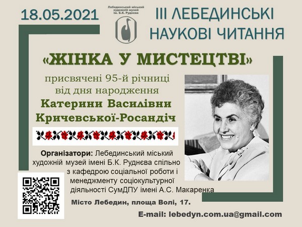 18 травня 2021 року викладачі та студенти кафедри соціальної роботи і менеджменту соціокультурної діяльності взяли участь у Третіх Лебединських читаннях, присвячених 95-й річниці від дня народження відомої україно-американської мисткині Катерини Кричевської-Росандіч.