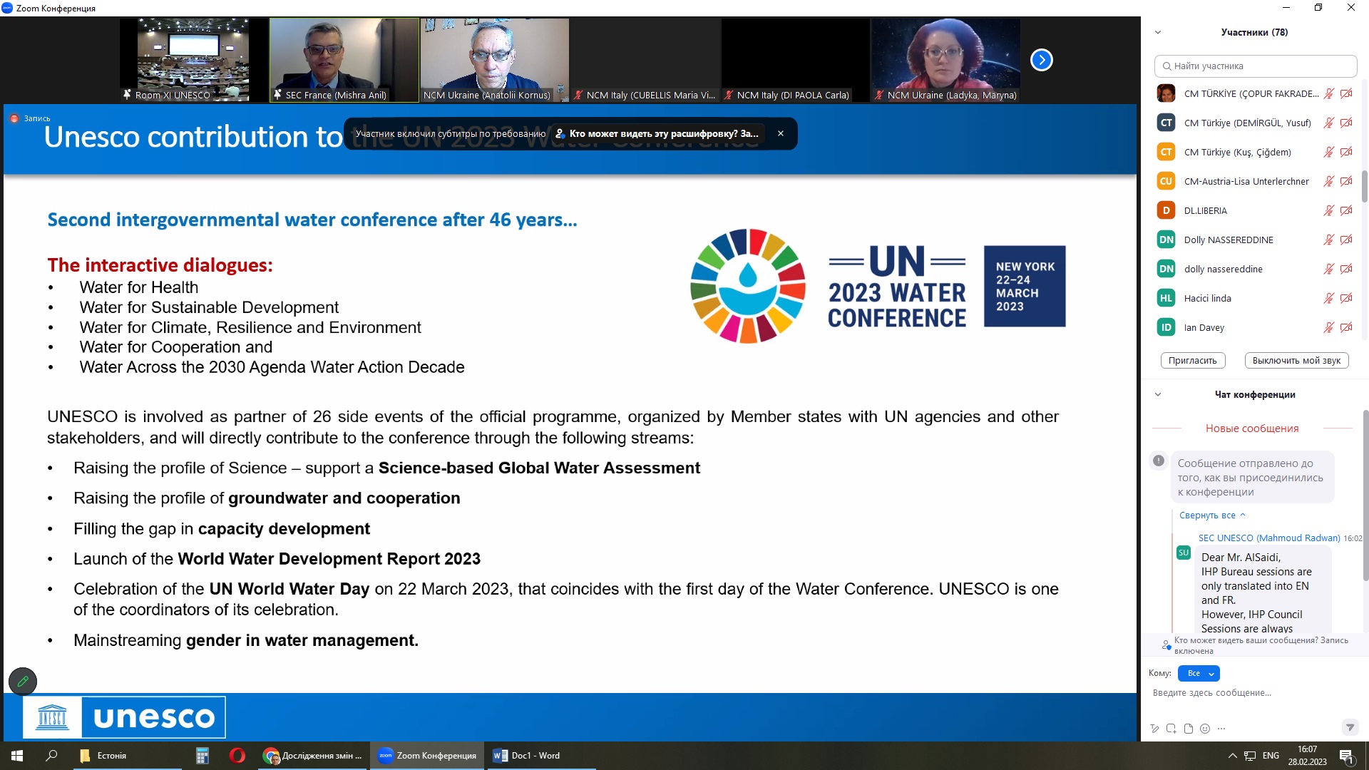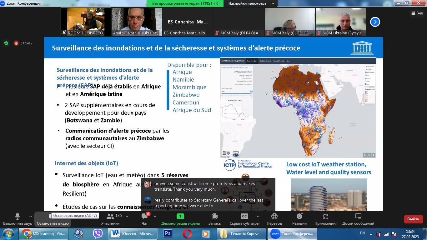 27-28 лютого 2023 р. доцент кафедри загальної та регіональної географії А.О. Корнус взяв участь у 62-му засіданні Бюро Міжурядової гідрологічної програми ЮНЕСКО.