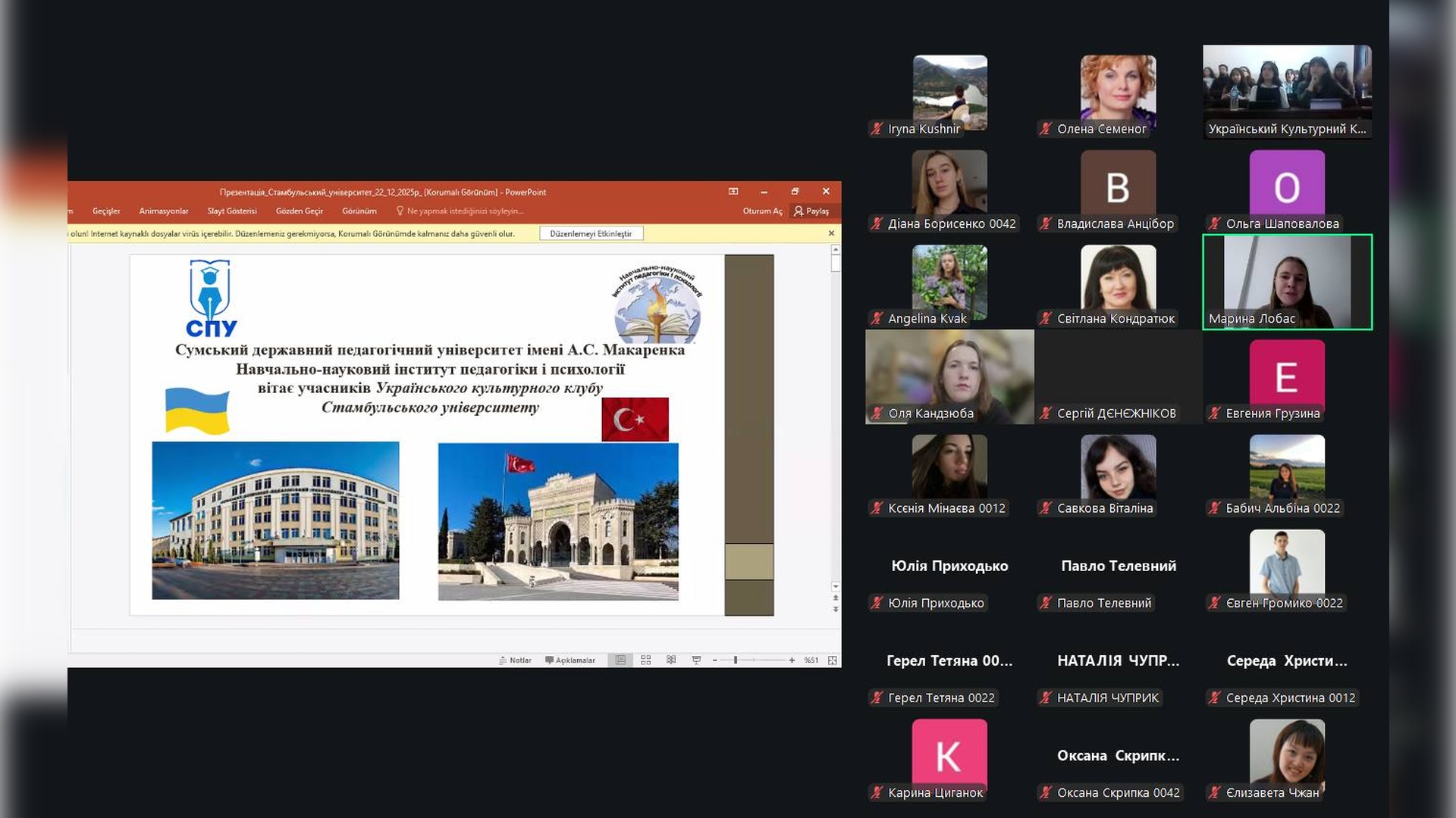 22 грудня 2025 року відбулася велика онлайн-зустріч студентської молоді СумДПУ та Стамбульського університету. Тема заходу – «Традиції українського Різдва та всесвітньо відомий «Щедрик» Миколи Леонтовича».