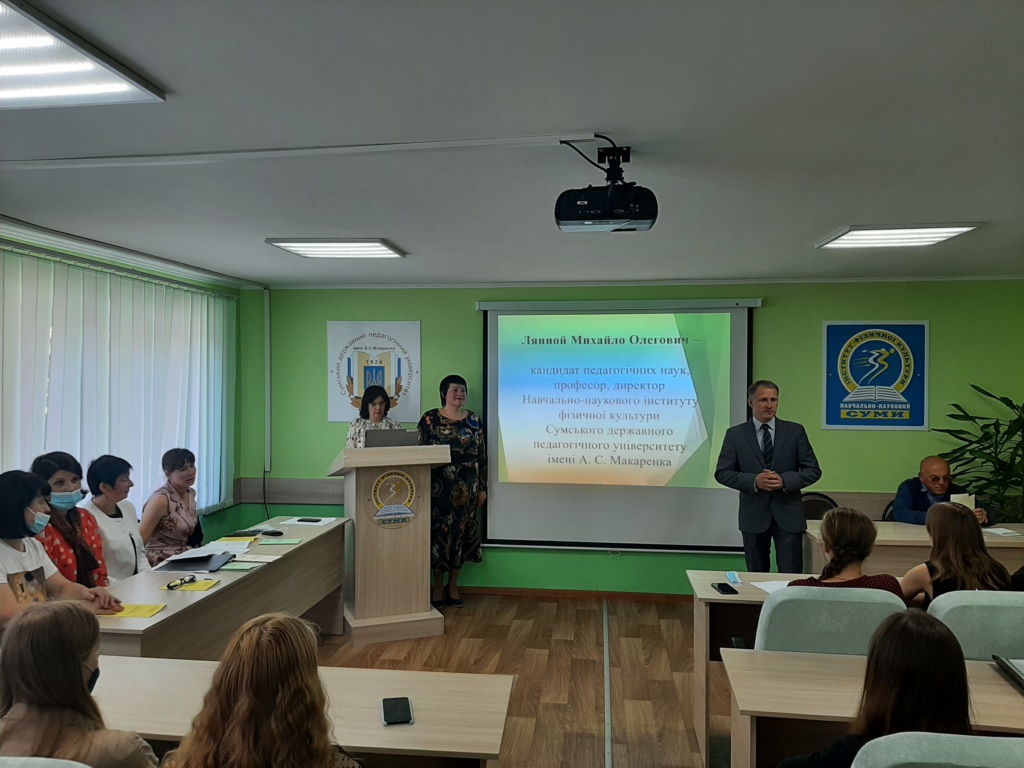 Привітали учасників: М.О. Лянной – кандидат педагогічних наук, професор, директор Навчального-наукового інституту фізичної культури; Я.М. Копитіна – кандидат наук з фізичного виховання і спорту, доцент кафедри здоров’я, фізичної терапії, реабілітації та ерготерапії, заступник директора з наукової роботи та інформатизації ННІФК СумДПУ
