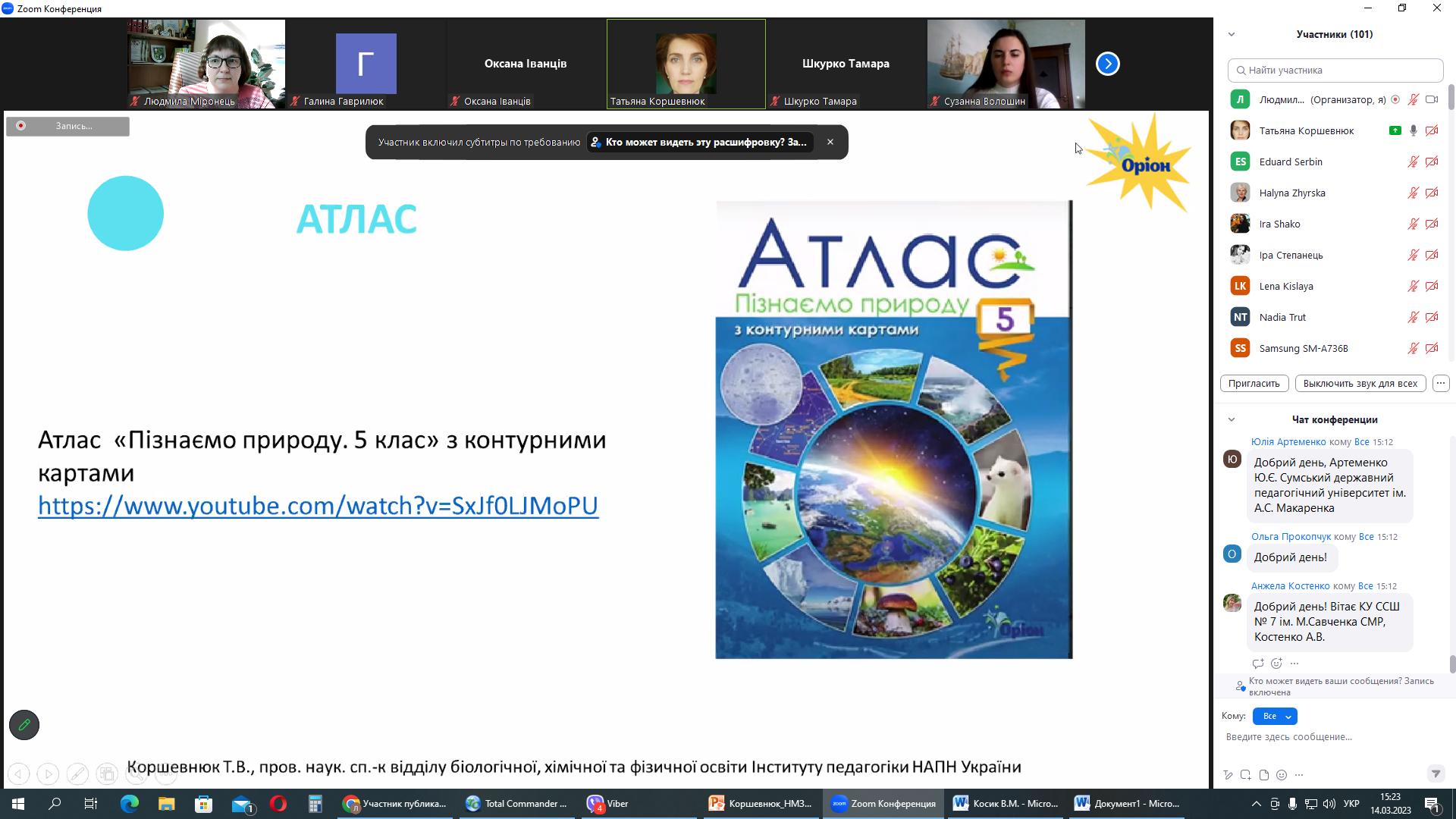 Тетяна Валеріївна Коршевнюк досить ґрунтовно схарактеризувала весь навчально-методичний комплект та зробила анонс нового підручника для 6 класу. З повною презентацією можна ознайомитися за посиланням – https://docs.google.com/presentation/d/1mDU5Dpb5BBlMShv2o21H5dmWTh069MRr/edit?usp=share_link&ouid=110936713800160365109&rtpof=true&sd=true Відео підручника інтегрованого курсу «Пізнаємо природу» розташоване за посиланням – https://drive.google.com/file/d/1tNLB8_f3hvwJFgSwpC8HiDmFkxNxhwJV/view?usp=share_link