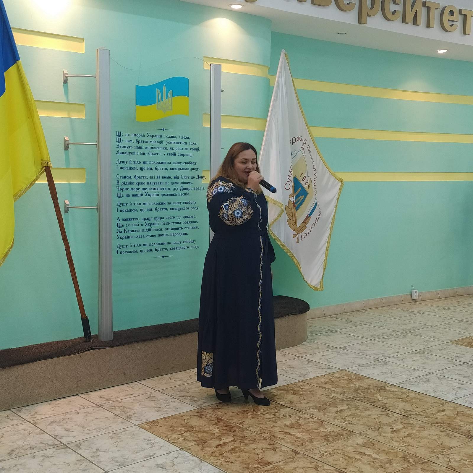 З нагоди державного свята в СумДПУ відбулися урочистості, які зібрали колектив університету в холі Центрального корпусу. До присутніх з вітальним словом звернулася перший проректор, професор Любов Пшенична, яка відзначила історичну тяглість державотворчих процесів на українських теренах та глибокі традиції нашого законодавства.