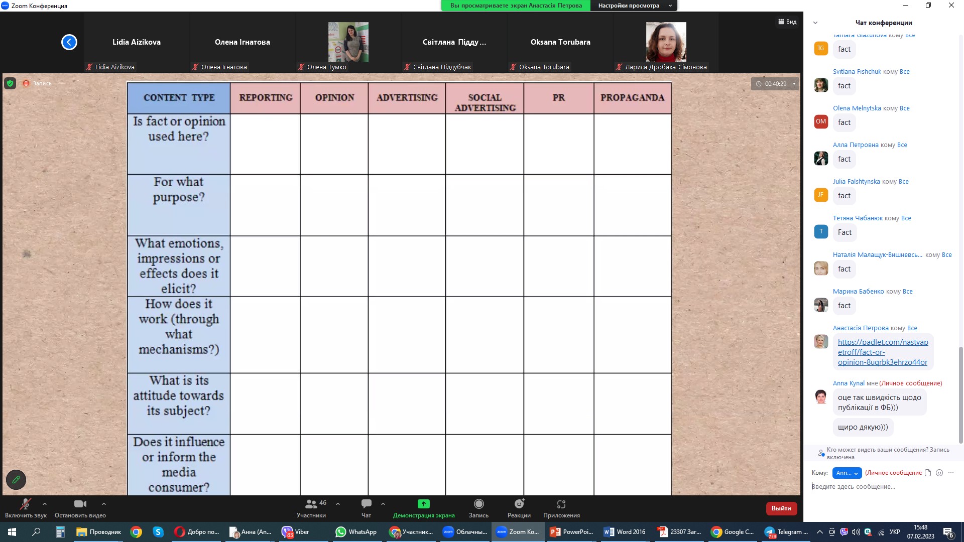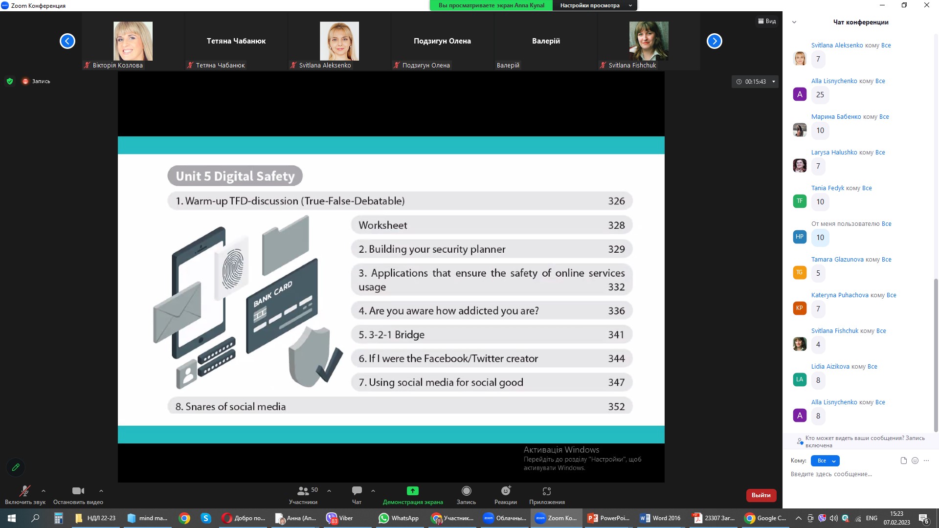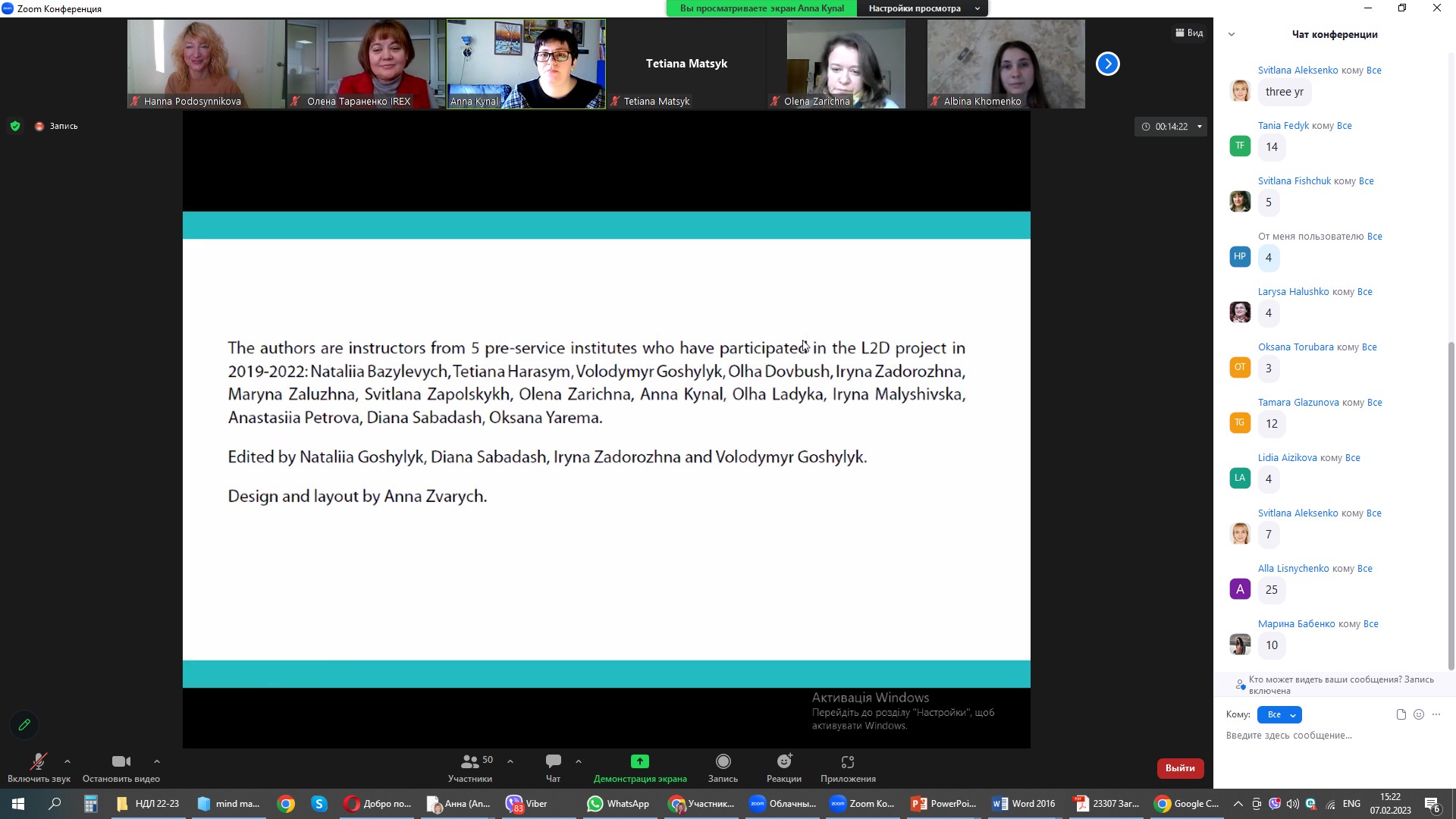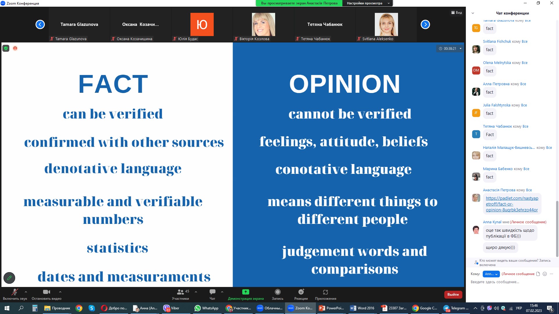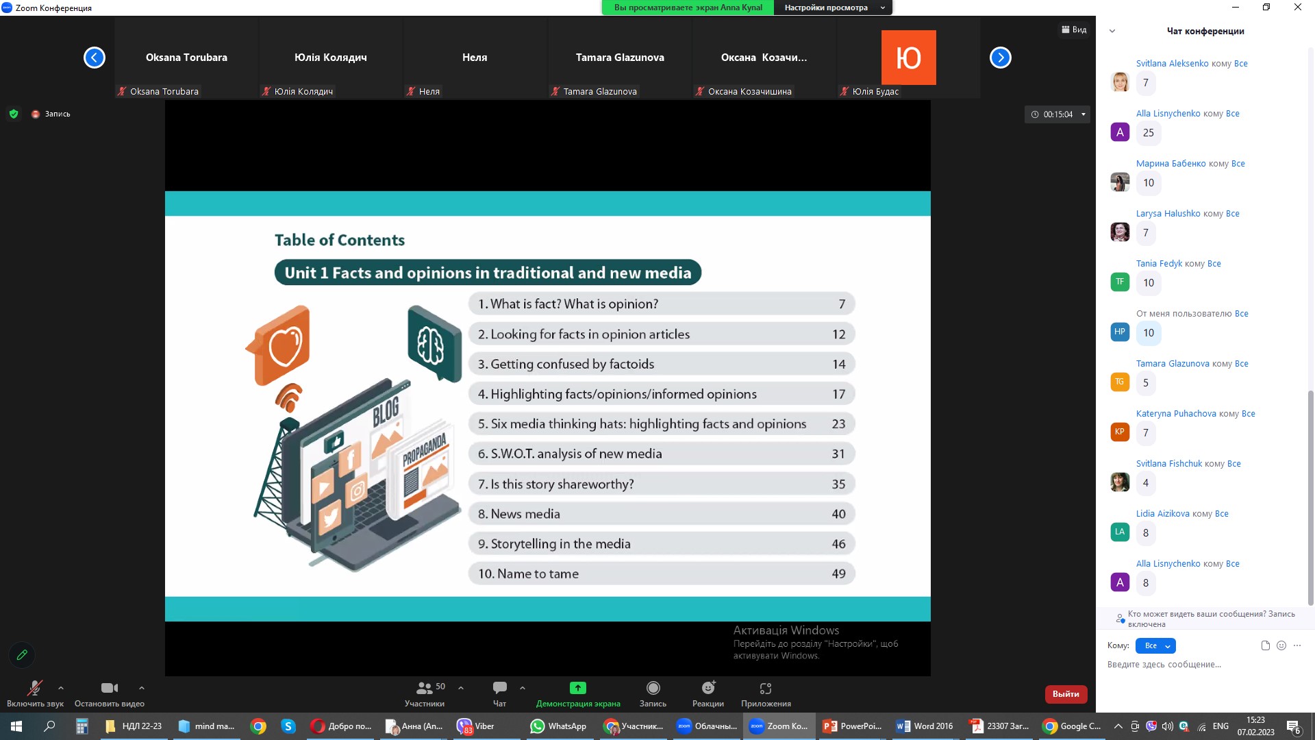 7 лютого 2023 року за підтримки Міжунверситетської науково-дослідної лабораторії сучасних технологій навчання іноземних мов і культур (керівник – Г.І.Подосиннікова, к.пед.н., доц., в.о.зав.кафедри англійської філології та лінгводидактики) Сумського державного педагогічного університету імені А.С.Макаренка відбувся інтерактивний семінар, присвячений презентації посібника з медіаграмотності, інтегрованого у викладання англійської мови «The curriculum for teaching English through Media Literacy», співавтором якого є член лабораторії КИНАЛЬ Анна Юріївна, кандидат педагогічних наук, старший викладач кафедри англійської філології Вінницького державного педагогічного університету імені Михайла Коцюбинського.