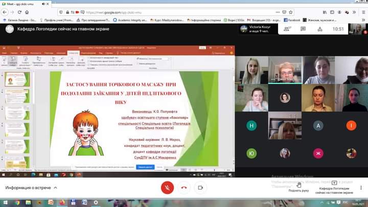 Вітаємо Полуюфту Катерину Олександрівну, студентку 4 курсу спеціальності 016 Спеціальна освіта (Логопедія) та її наукового керівника кандидата педагогічних наук, доцента Мороз Людмилу Василівну з перемогою у ІІ турі конкурсу студентських наукових робіт, що проходив у рамках V Всеукраїнської науково-практичної конференції «ІННОВАЦІЙНІ ПІДХОДИ В ОСВІТІ ТА РЕАБІЛІТАЦІЇ ДІТЕЙ ІЗ ОСОБЛИВИМИ ОСВІТНІМИ ПОТРЕБАМИ» (18 травня 2020 р., м. Київ).