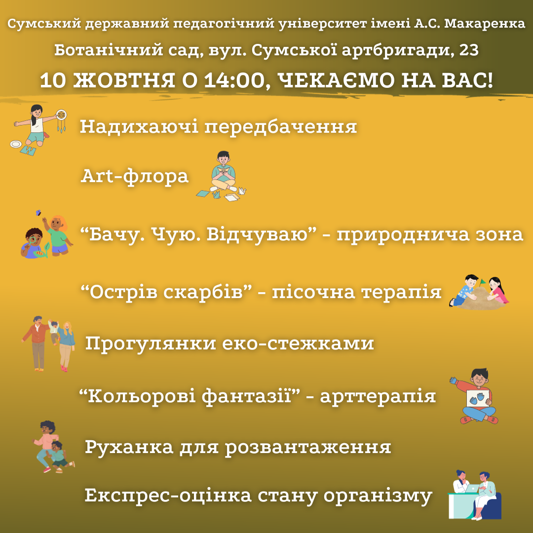 В межах Всеукраїнської програми ментального здоров'я "Ти як?", ініційованої першою леді України Оленою Зеленською, Сумський державний педагогічний університет імені А.С. Макаренка 10 жовтня проводить природничо-психологічний квест "Життя прекрасне!".