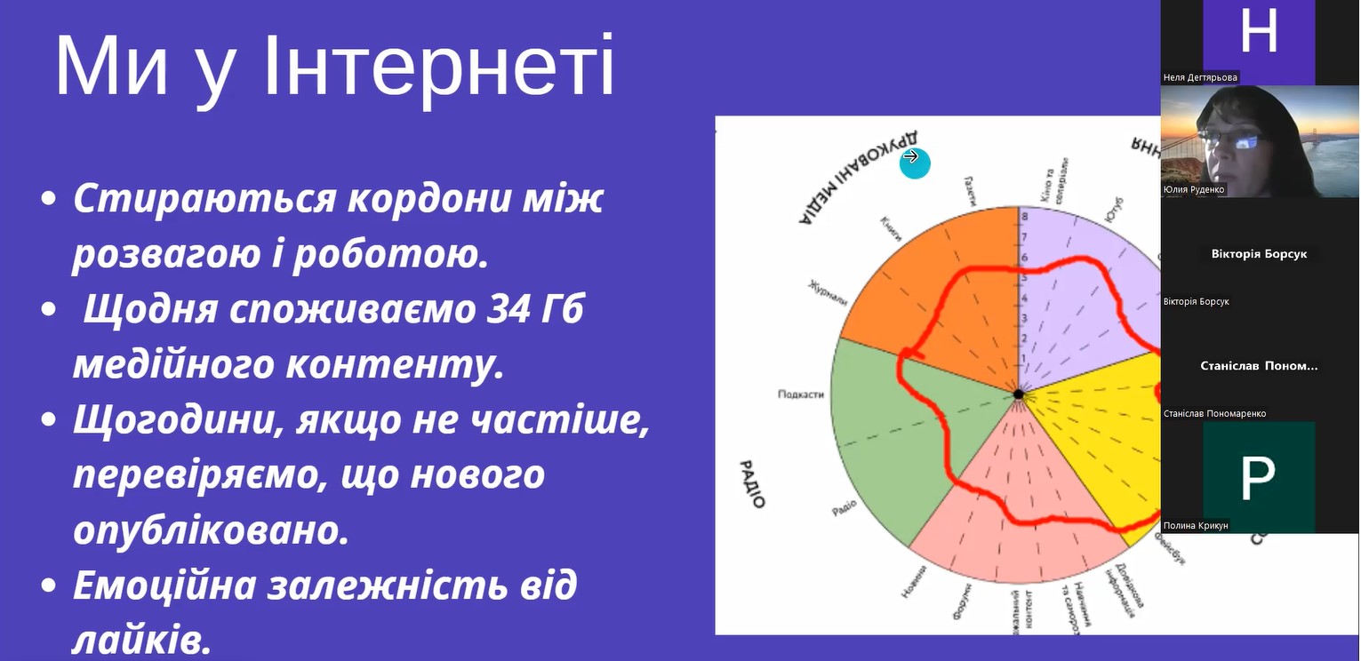 Викладачі кафедри інформатики провели майстер-класи з комп'ютерної анімації (доцент кафедри Юрченко Артем Олександрович) та виявлення фейків (старший викладач Руденко Юлія Олександрівна), а також тренінг з питань кібербезпеки (студент 443 групи Литовченко Денис).