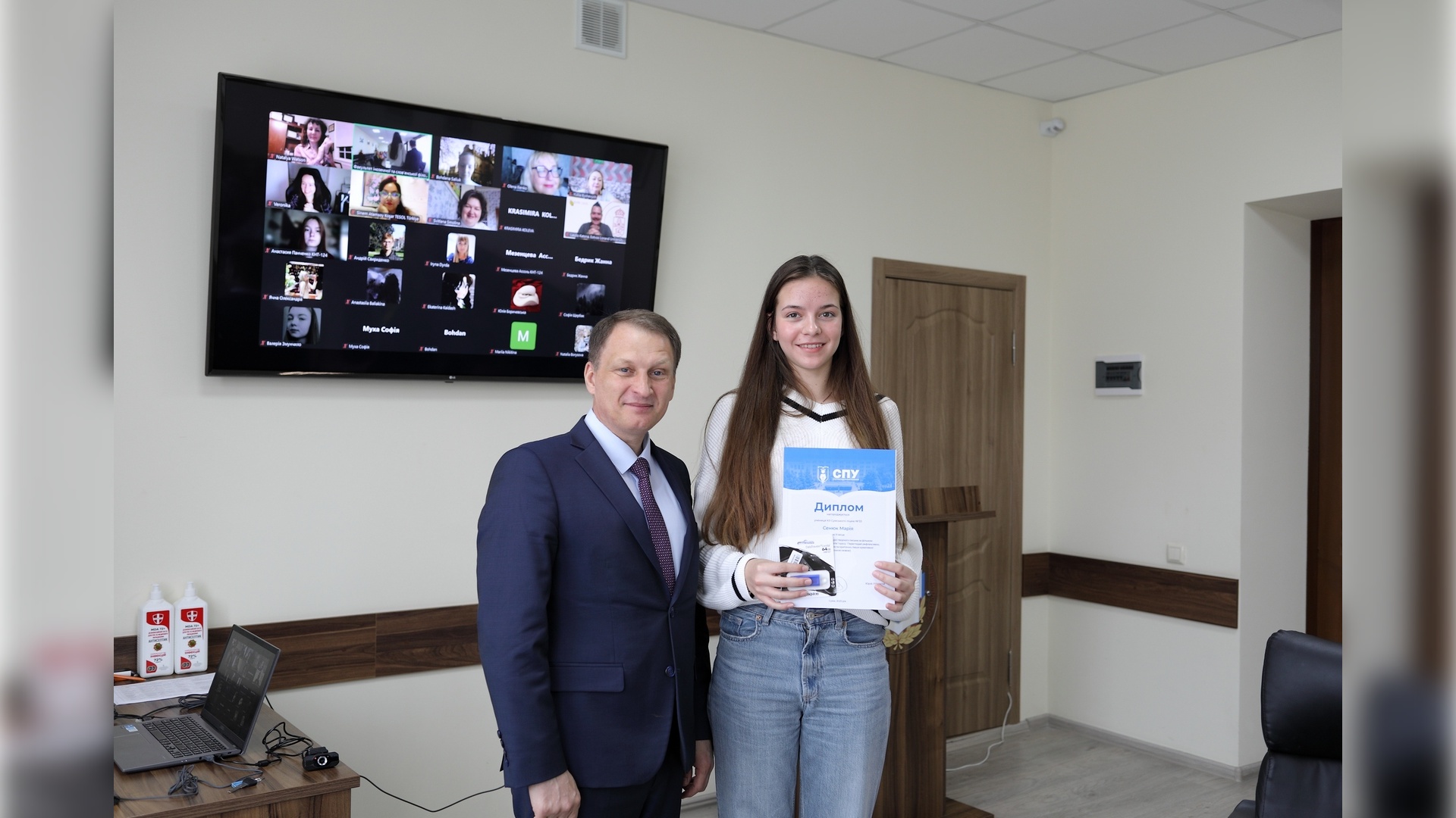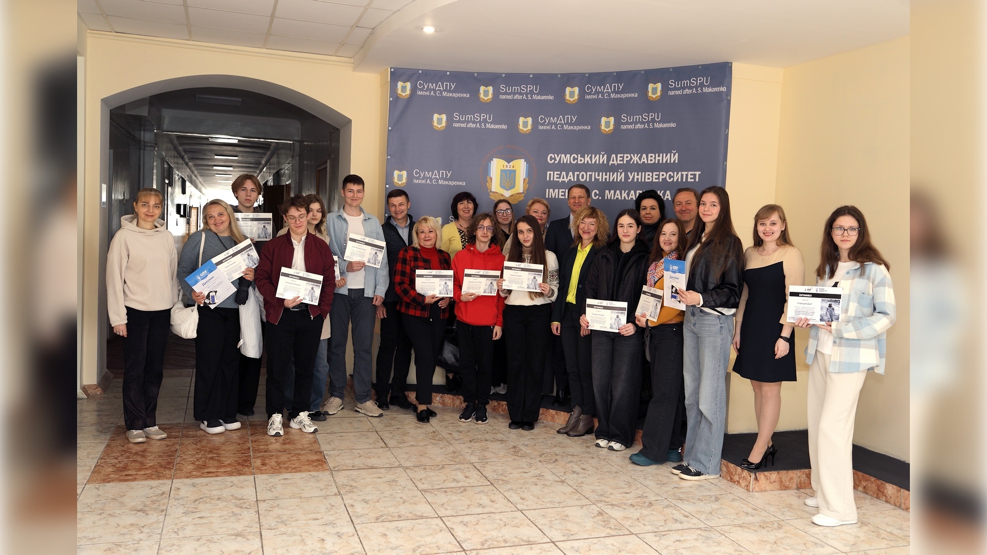 07 травня 2025 року відбулася урочиста зустріч, присвячена підбиттю підсумків ІІІ Міжнародного конкурсу творчого письма за фільмом для старшокласників та студентів 1 курсу: Переглядай рефлексивно, досліджуй доброчесно, мисли критично, пиши креативно! (англійською мовою) за участю ректора СумДПУ імені А.С. Макаренка Ю.О. Лянного, декана факультету іноземної та слов’янської філології Л.І. Клочко, завідувача кафедри англійської філології та лінгводидактики Г.І. Подосиннікової.