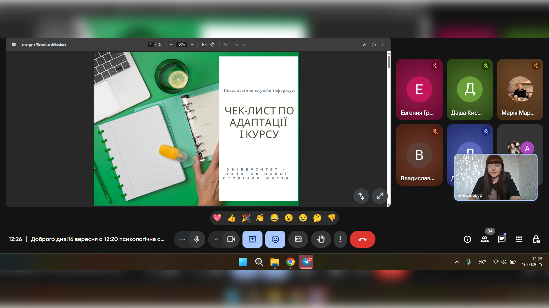 16 вересня для студентів першокурсників, фахівцями психологічної служби було проведено онлайн-зустріч на тему: «Чек-лист по адаптації І курсу».