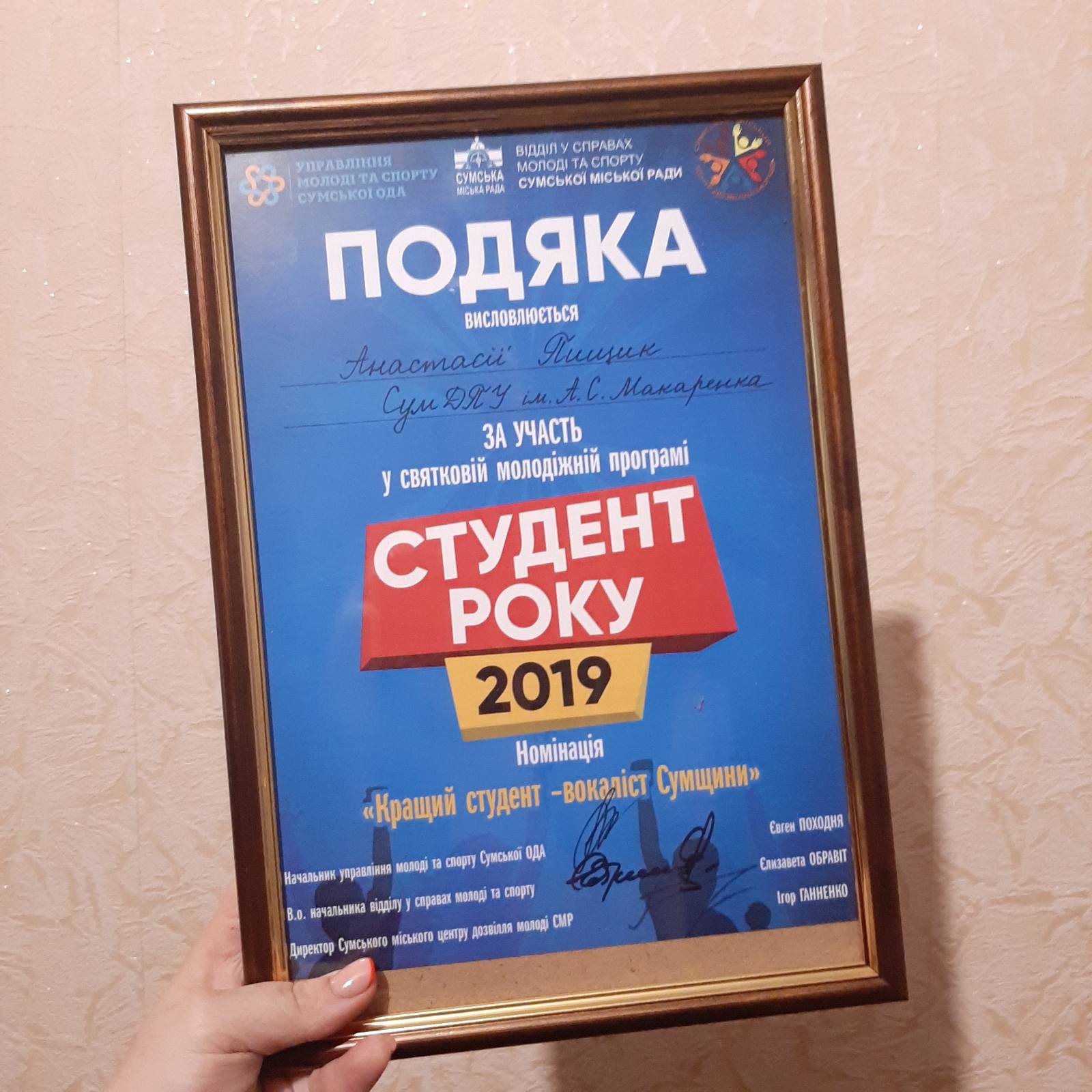 28 листопада 2019 року проходила святкова молодіжна програма "Студент року ". Сумський державний педагогічний університет імені А.С. Макаренка представляла студентка Навчально - наукового інституту культури і мистецтв Луцик Ангеліна. Її блискучий номер показав що вона незрівнянно талановита й артистична, з професійним рівнем гри на саксофоні.