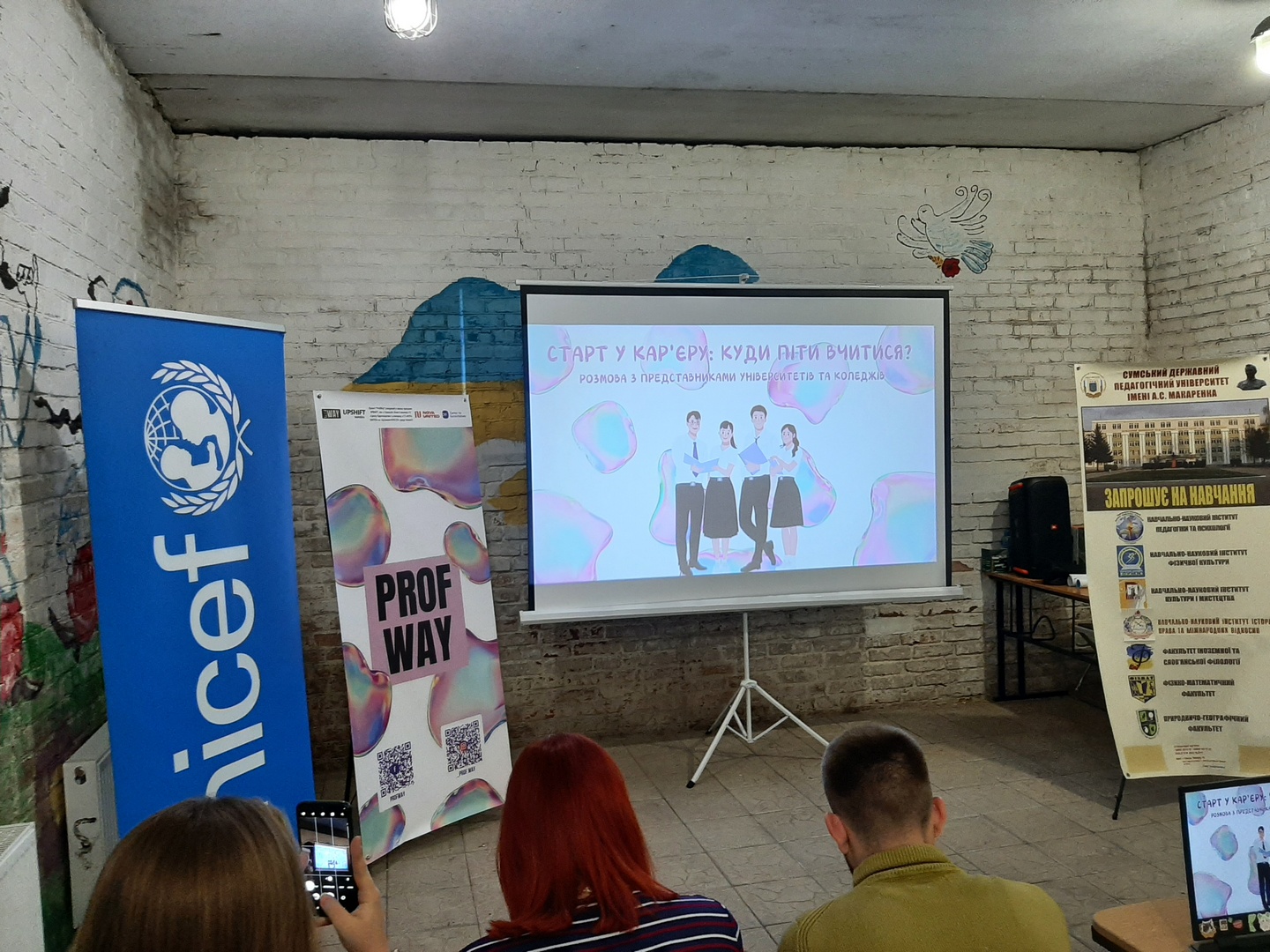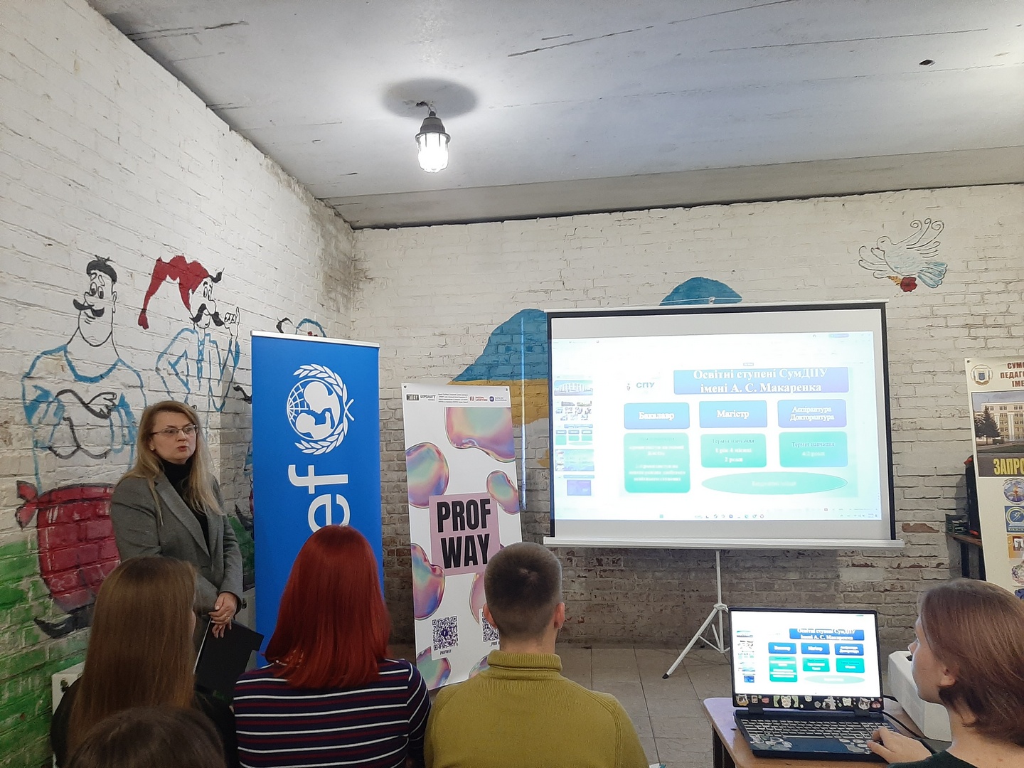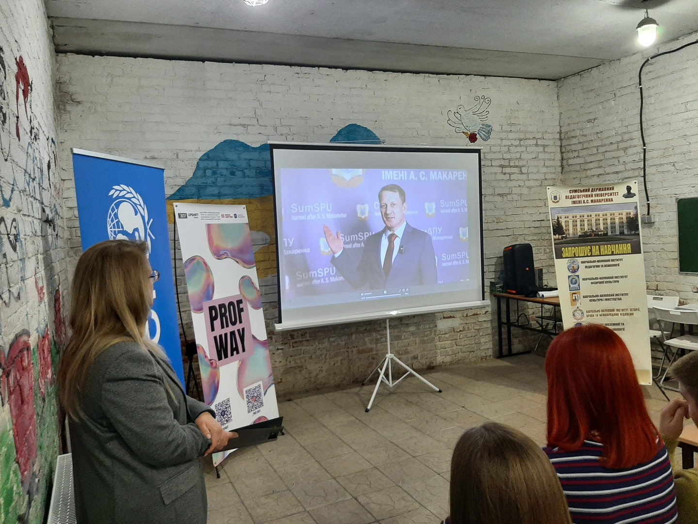 27 листопада 2024 року Центр професійно-кар'єрної орієнтації та вступу на навчання СумДПУ імені А. С. Макаренка з великим задоволенням та захопленням активною талановитою молоддю прийняв участь у заході «Старт у карʼєру: куди піти вчитись?», який відбувся в межах проєкту «ProfWay”, створений в межах програми UPSHIFT, яку в Сумській області реалізує ГО «NOVA UNITED» у співпраці з ГО «Центр Євроініціатив» за підтримки ЮНІСЕФ Україна і уряду Норвегії.