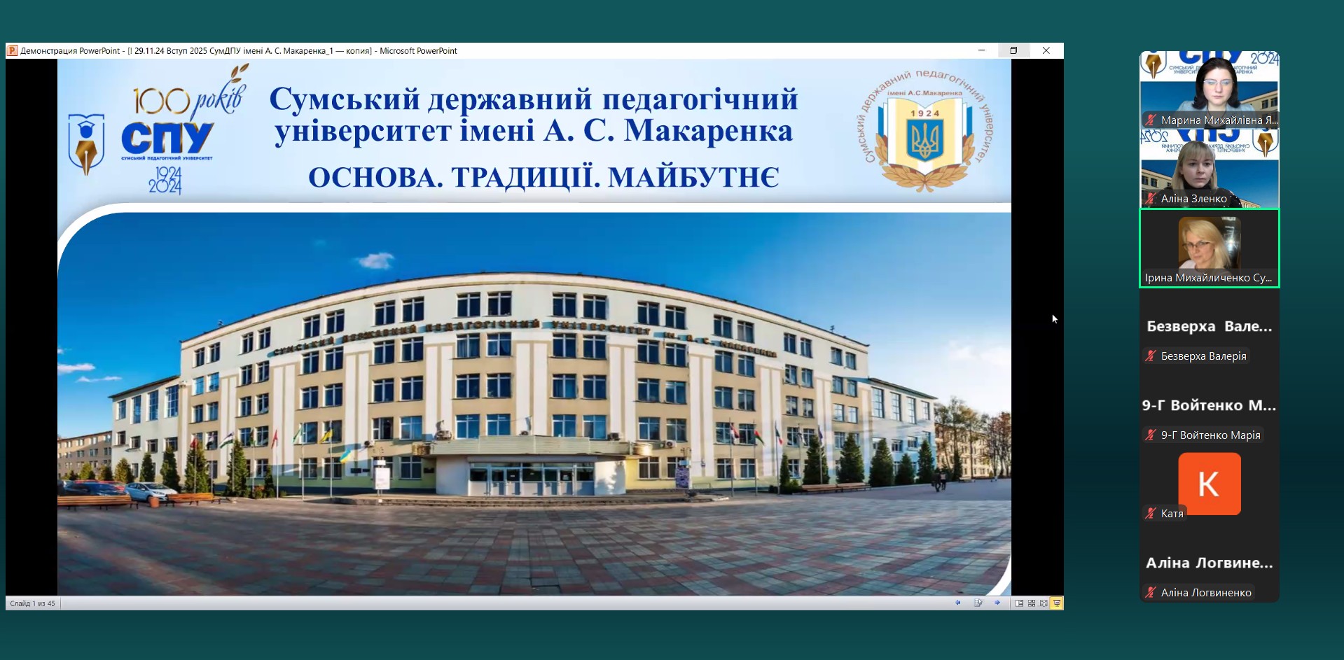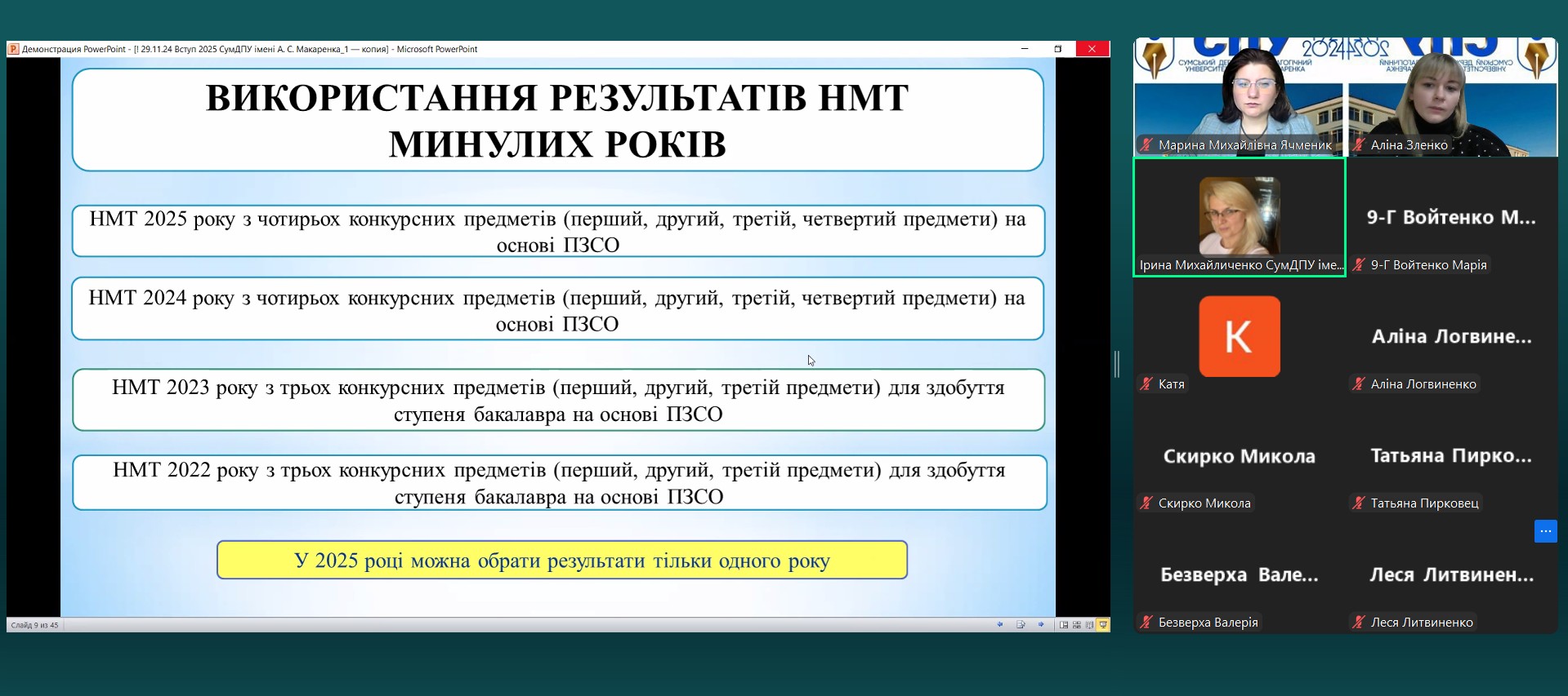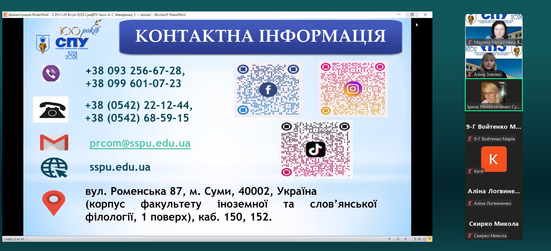 29 листопада 2024 року відбувся захід «Вечір профорієнтації у СумДПУ: батьки і діти» (на платформі Zoom).