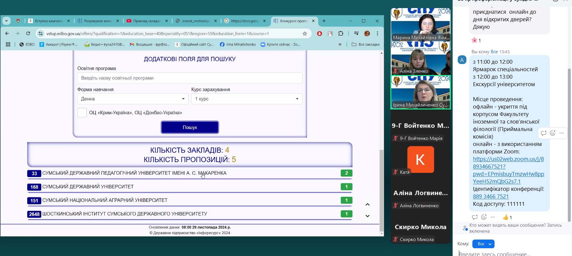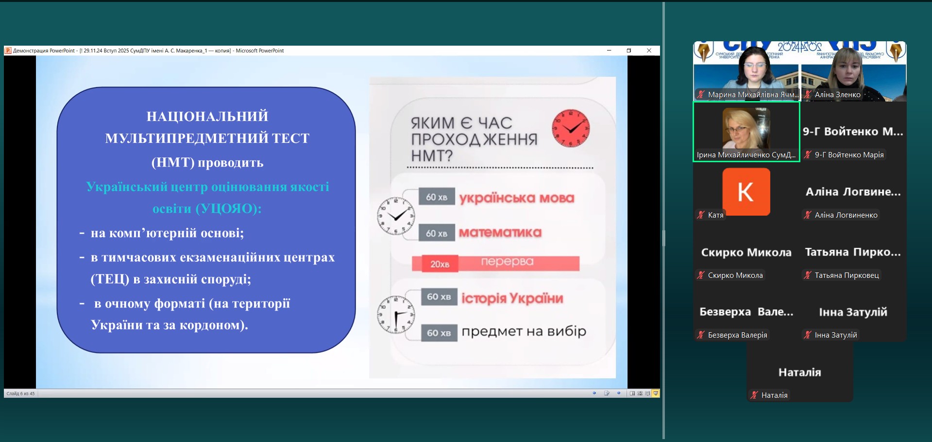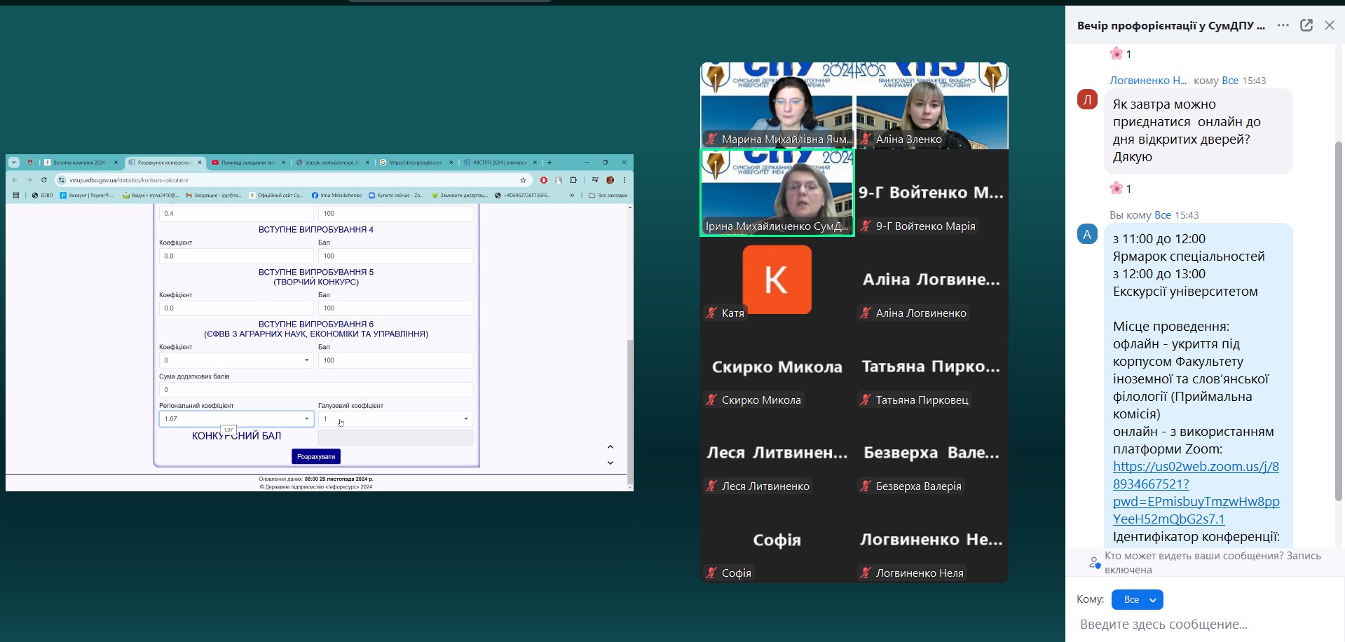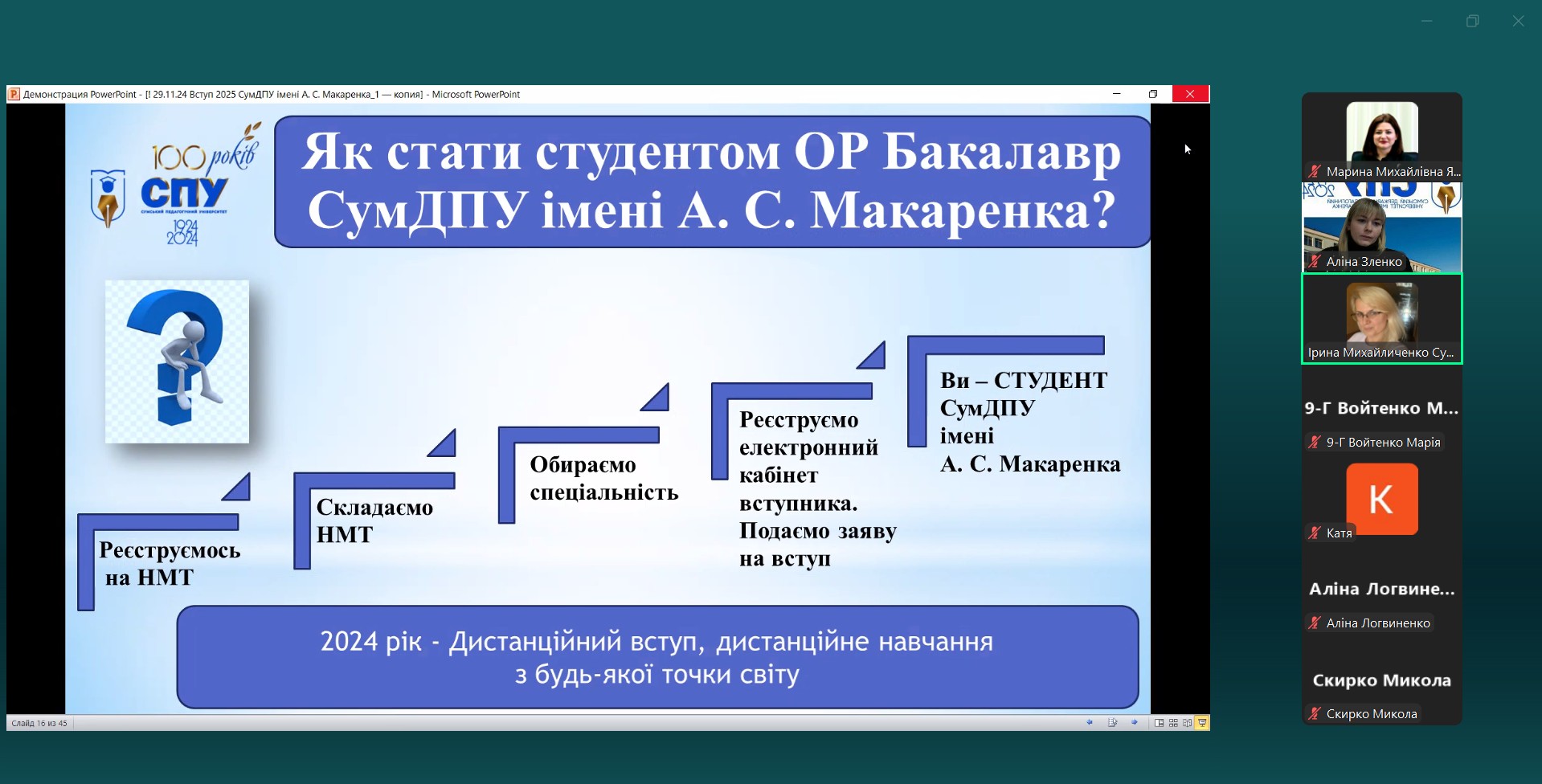29 листопада 2024 року відбувся захід «Вечір профорієнтації у СумДПУ: батьки і діти» (на платформі Zoom).
