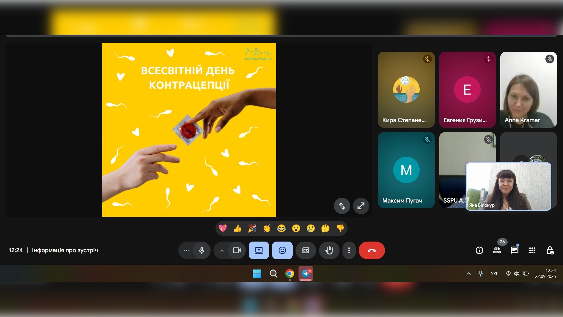 22 вересня фахівці психологічної служби та запрошеним соціальним педагогом Анною Крамар «Клініки, дружньої до молоді», провели он-лайн захід для студентів на тему: «Засоби контрацепції» приурочений до Всесвітнього дня контрацепції, який щорічно припадає на 26 вересня.