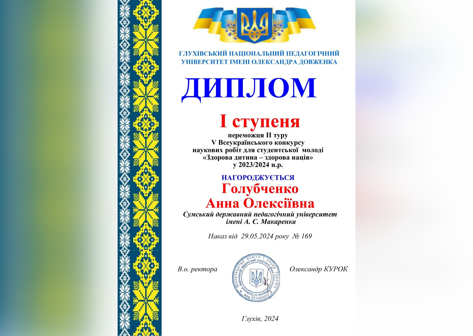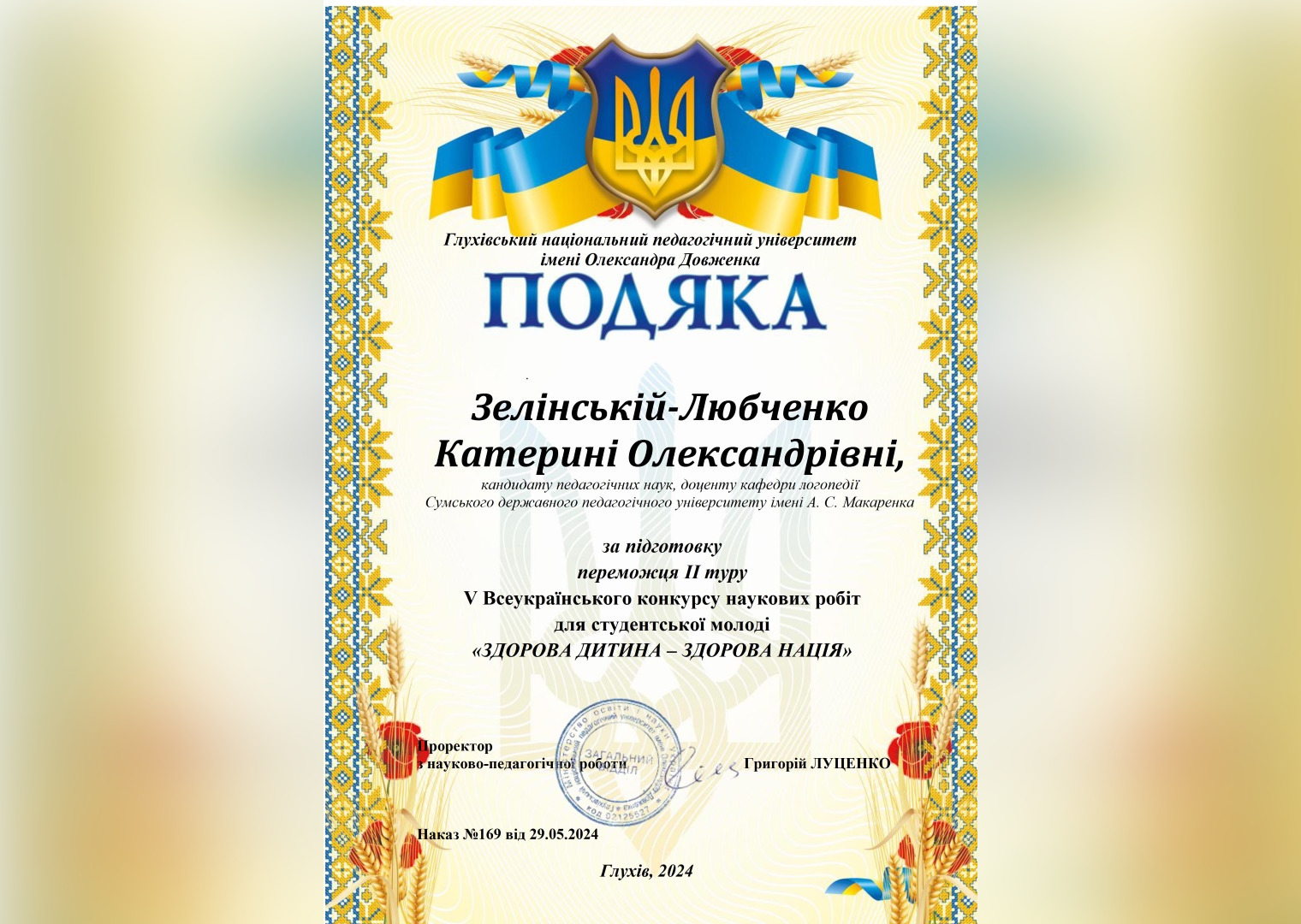 Вітаємо з перемогою здобувачку освіти першого (бакалаврського) рівня вищої освіти спеціальності 016 Спеціальна освіта (Логопедія).